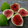 Ancienne variété, l'une des figues les plus savoureuses avec des fruits vert-jaune à chair rouge foncé.