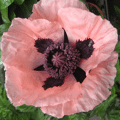 Annuelle, aux grandes fleurs délicates, soyeuses, de couleur rose pâle au coeur lilas, suivies de capsules décoratives.