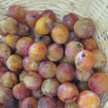 Fruit: Mirabelle du gabarit d'une grosse cerise de couleur jaune légèrement colorée de rouge