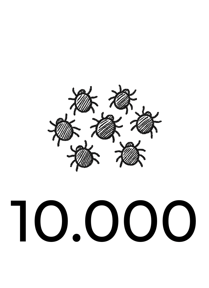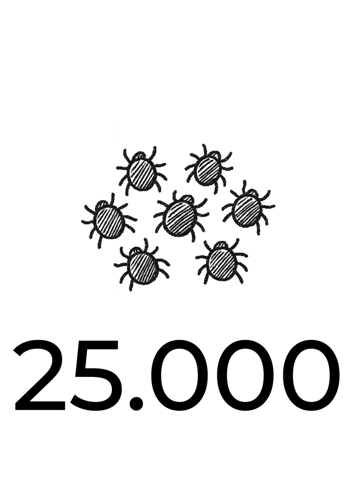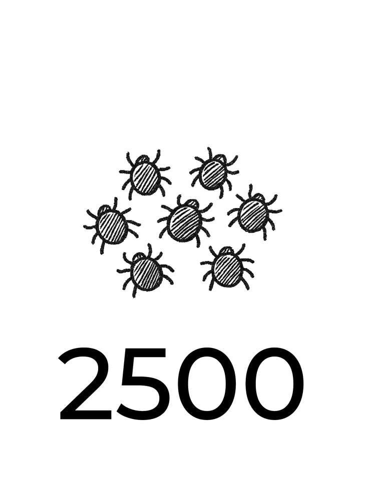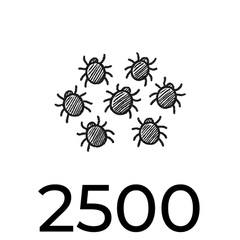 2.500 roofmijten worden enkel preventief gebruikt! In het voorjaar om de drie weken een zakje van 2.500 roofmijten uitzetten, is een goed regime in kippenhokken kleiner dan 10 m2 (alle wanden, plafond en vloer meegerekend). Wil je niet zo vaak roofmijten uitzetten, kies dan voor een vroegtijdige uitzetting van Chickenheppie 10 m2. Ook in dierenverblijven groter dan 10 m2, gebruik je direct kokers van 10 m2 als preventieve behandeling.