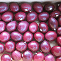 Vroege zeer productieve variëteit met gele peulen en mooie ronde bordeaux-roze zaden.