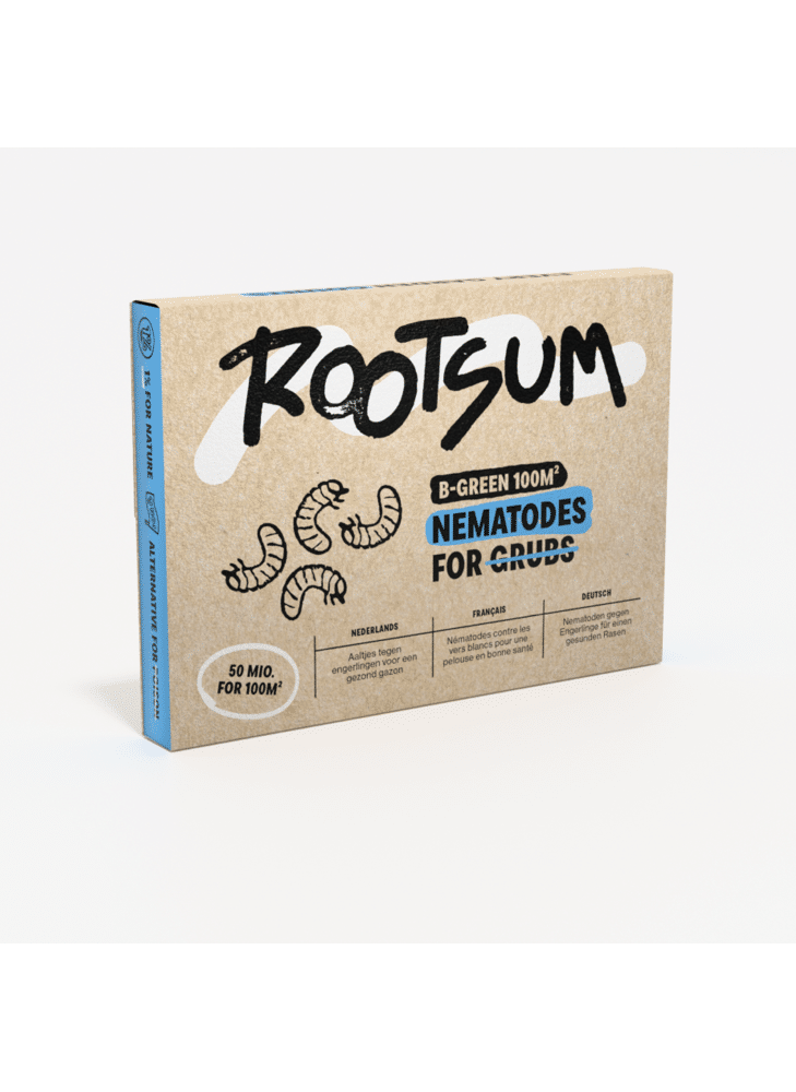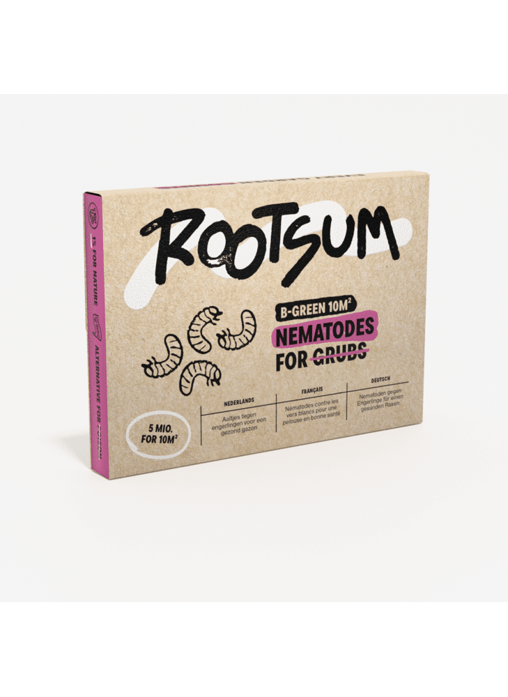 DetailsHeeft je gazon kale en bruine plekken? Zie je witte larven aan de wortels van het gazon vreten? Dan heb je vast last van engerlingen. Bij ernstige aantasting komen de graszoden los te liggen, je kan het als het ware oprollen. Vogels en mollen zijn verzot op engerlingen en komen daarom je gras omwoelen.Wat is B-green?B-green bevat aaltjes die de engerlingen biologisch bestrijden. In de zomer kan je B-green ook gebruiken om de larven van de taxuskever te bestrijden. Deze aaltjes leven samen met bacteriën die de jonge keverlarven doden. Aaltjes zijn 100 % natuurlijk en komen overal in de natuur voor.1 tot 2 dagen na toepassing stoppen de besmette larven met eten en sterven ze af. De aaltjes blijven tot 6 weken actief in de grond bij voldoende vochtigheid en een constante bodemtemperatuur van minimum 12°C. De grootste bestrijding gebeurt echter de eerste twee weken na toepassing.Toepassen van aaltjes tegen engerlingenHet gras eerst kort maaien. Indien het grasveld een dikke viltlaag heeft, eerst verticuteren.Aaltjes oplossen in water en vervolgens verdunnen naargelang de te behandelen oppervlakte.Giet met de gieter of sproei met onze nematodenspuit het mengsel op de aangetaste plekken en ruim daarrond. Indien je veel kale plekken hebt, kan je best het volledig gazon behandelen. Niet toepassen in de volle zon. In de regen toepassen is ideaal.De ondergrond vochtig houden gedurende minimum 2 weken. Diep water geven zodat de ondergrond vochtig is.Meerdere jaren na mekaar behandelen om de cyclus van de kever te doorbreken.Wanneer engerlingen bestrijden met aaltjes?De beste toepassingsperiode is half augustus - eind september. Op dat moment hebben alle keversoorten jonge larven in de grond welke snel te bestrijden zijn.Hieronder vind je de ideale behandelingsperiode volgens de keversoort.Behandelingsperiode, specifiek per keversoortRozenkever (Phyllopertha horticola) bestrijd je vanaf eind juli tot eind september. In het voorjaar is de rozenkever niet bestrijdbaar, zit op dat moment in popstadium.Junikever (Phyllophaga spp.) en Meikever (Melolontha melolontha) bestrijd je met B-green vanaf half augustus tot eind september. In het voorjaar (april-mei-juni) bestrijd je met B-green+.Sallandkever (Hoplia philanthus) de larven van deze kever bestrijd je in april-mei en vanaf half augustus tot eind september met B-green.Taxuskever (Otiorhynchus sulcatus) larven bestrijd je met B-green van half juli tot eind augustus. In het voorjaar en najaar kies je voor Kraunema om de taxuskever te bestrijden.