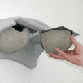 Om ervoor te zorgen dat huiszwaluwen net zo goed aan gevels zonder dakoverstekken met succes kunnen broeden, werd dit gevelnest ontwikkeld en ook succesvol toegepast. Het unieke, moderne ontwerp is beslist een optische verrijking in onze steden en gemeentes.
